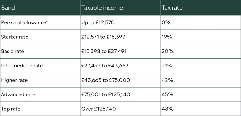 *As with the rest of the UK, those earning more than £100,000 will see their Personal Allowance reduced by £1 for every £2 earned over £100,000 and is zero if your income is £125,140 or above.