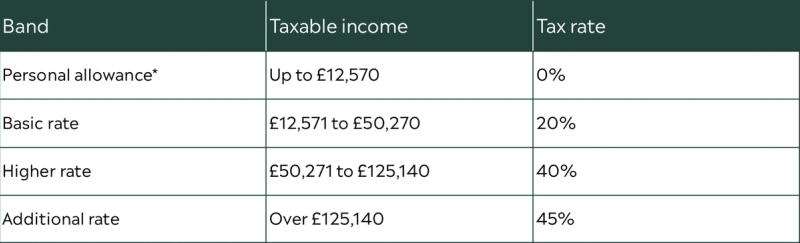 As a reminder, the income tax rates and thresholds for the 2025/26 tax year in England, Wales and Northern Ireland are: